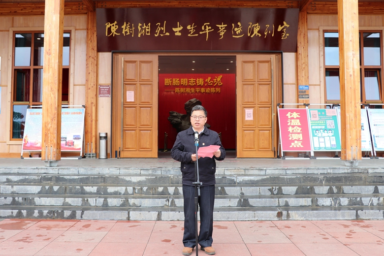 张一波在致辞中代表道县县委、县政府对我校领导和师生代表的到来表示热烈欢迎!他表示十大买球官方网站选择与陈树湘纪念馆共建思想政治理论课实践教学基地,是对纪念馆的肯定和鼓舞。陈树湘烈士纪念馆作为省级爱国主义教育基地和党性教育基地,其丰富而有内涵的红色资源一定能为十大买球官方网站的师生们提供一个“学党史、知党情、跟党走”的好去处,为学校加强思想政治教育、立德树人提供一个好平台。