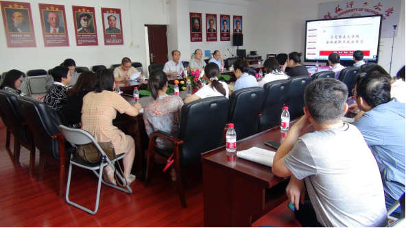 图为全体教职工政治学习会议现场
