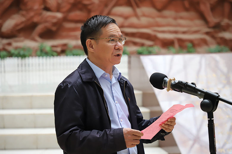 梁福沛在致辞中向基地的正式挂牌表示热烈祝贺,对关心、支持和参与实践教学基地建设的崇左市委宣传部副部长黄智庭及相关工作人员表示衷心感谢。他指出,实践教学基地的落成,是认真贯彻落实党中央号召,深入开展党史学习教育的具体体现,也是大力推进思想政治教育质量提升工程,促进课程育人、实践育人、文化育人建设的重要成果,标志着我校与地方“共建”“共育”“共享”的思政平台建设水平又登上一个崭新的台阶,思想政治理论课实践教学又迈出了坚实的一步。他强调,学校思政工作者要充分利用实践基地,完善教学方法,丰富教学内容,组织引领广大青年学生在基地开展实践学习,把老一辈无产阶级革命家在龙州起义的奋斗精神、奉献精神和红色基因不断传承下去,为中华民族伟大复兴积蓄磅礴力量。梁福沛希望双方以此为契机,把实践教学基地打造成十大买球官方网站与崇左市的“连心桥”,在人才培养、科技创新、产学研结合、社会实践等方面加强合作交流,从而实现良性互动与合作共赢,在全面建成小康社会的道路上并肩同行,共创佳绩。