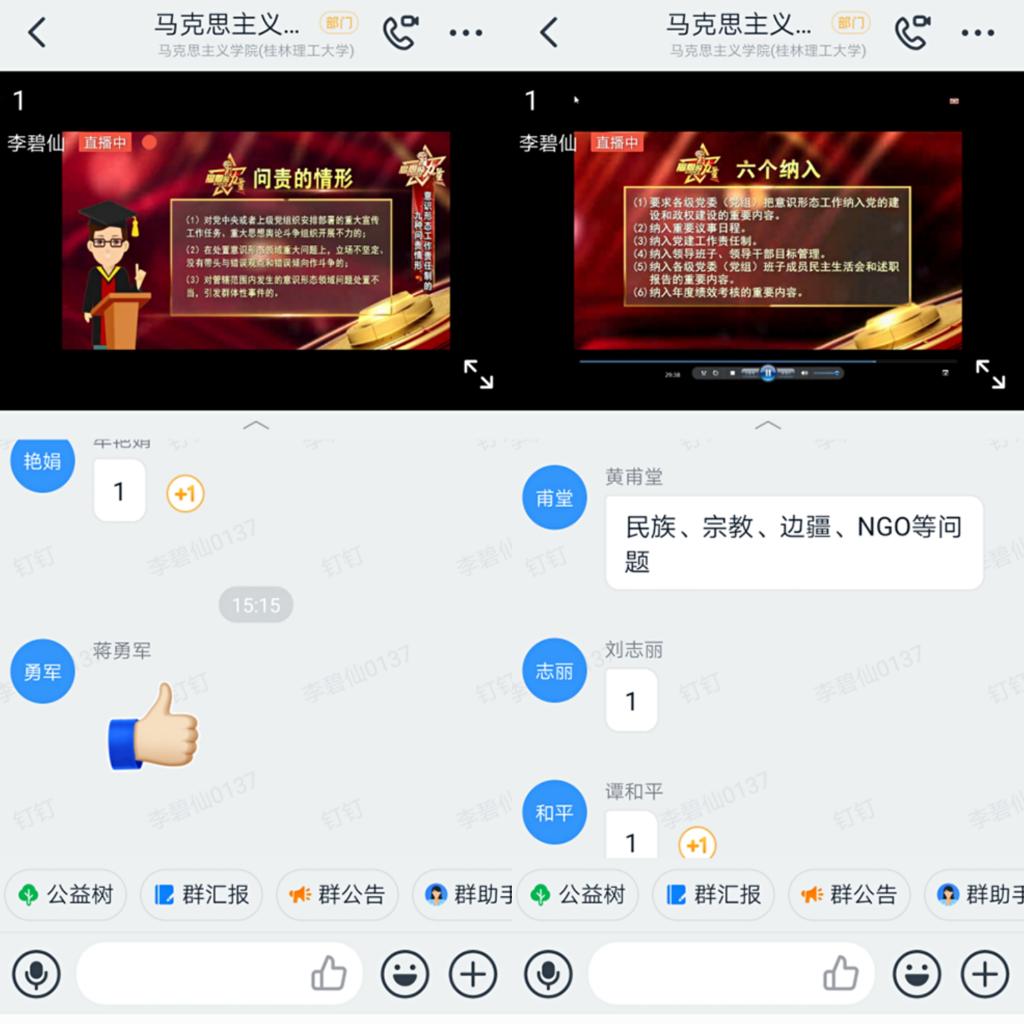 大家纷纷表示,意识形态工作是人人有责的思想政治任务,今后将继续把意识形态工作纳入学习内容,增强底线思维,做到居安思危,不断提升意识形态工作的能力与水平,不断提高自身综合素质,以崭新的姿态和饱满的热情做好教学管理工作,为建设特色鲜明、国内知名的高水平理工大学贡献力量!