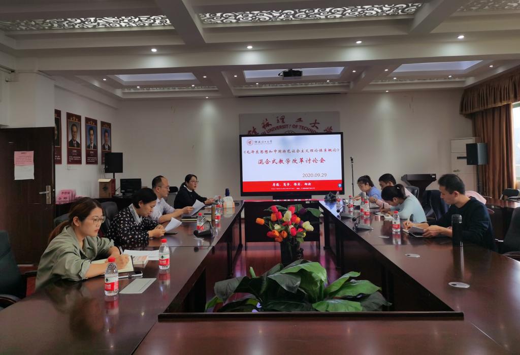 为扎实推进《毛泽东思想和中国特色社会主义理论体系概论》课程线上线下混合式教学改革,9月29日上午,十大买球官网中国特色社会主义理论教研室于雁山校区07415会议室召开了混合式教学改革讨论会。会议由教研室主任张露萍老师主持,全体授课教师参加了会议。