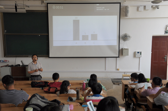在公开示范课上,谭和平老师主要讲解全面深化改革,通过雨课堂软件调动学生的积极性,让学生们主动参与到课堂当中来。阳林老师主要讲解弘扬中国精神,引经据典,思路清晰,表情生动,学生们也听得非常认真。