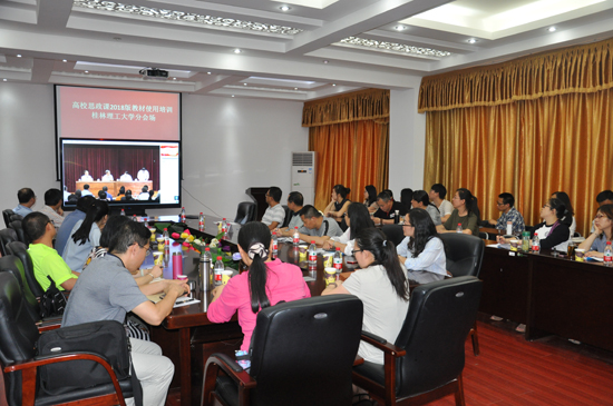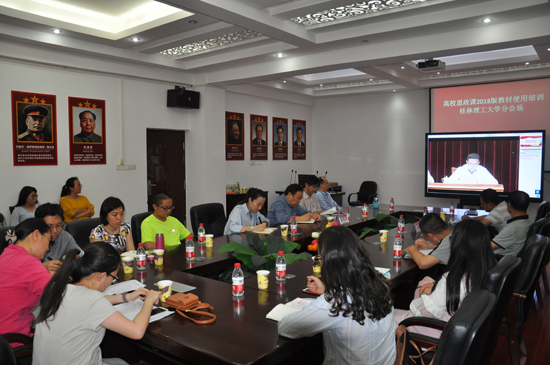 为深入学习宣传贯彻党的十九大精神,推进习近平新时代中国特色社会主义思想和党的十九大精神“进教材、进课堂、进头脑”,5月14日下午,十大买球官方网站组织教师参加教育部在京召开的高校思想政治理论课2018年版教材使用培训开班仪式视频会议,学校副校长梁福沛出席会议,十大买球官方网站全体思想政治理论课教师参加会议。