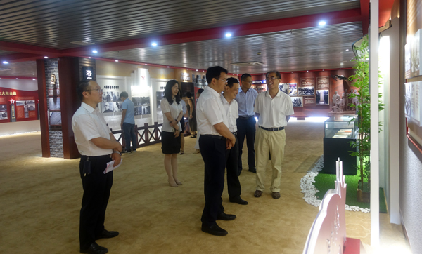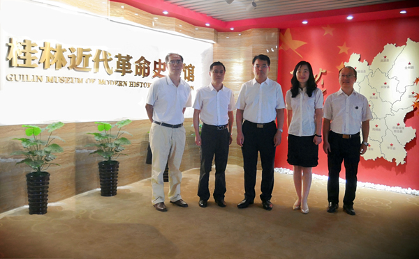 李国忠书记一行参观了正在建设的“桂林近代革命史展馆”,并就展馆的建设进度、展馆布展的详细内容、使用推广计划等方面的情况进行了全面深入的了解。在了解“桂林近代革命史展馆”的有关建设工作后,李国忠书记对学院针对高校思想政治理论课的特点和桂林丰富的革命文化资源的优势,开展课堂理论教学与实践教学相结合所做的工作给予充分的肯定,认为这是我校思想政治理论课建设贯彻落实习近平在全国思想政治理论课教师座谈会上重要讲话精神的具体体现。他希望学院进一步加快推进展馆的建设力度,明确展馆的目标与定位,充分发挥展馆实践教学的作用和思想教育的价值。副厅级调研员张劲松还就做好展馆讲解员培训、展馆相关器材设备的完善等提出了具体的指导性意见。