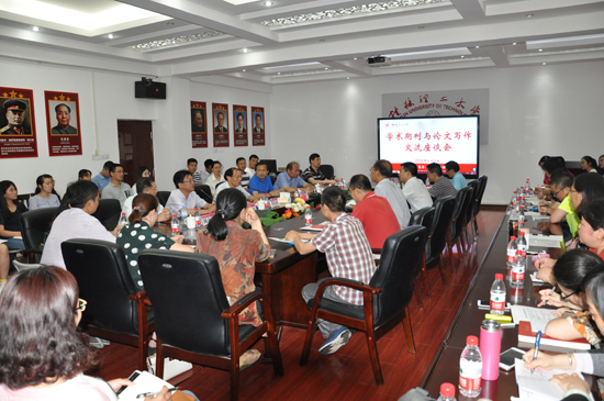 6月5日下午,中国地质大学(武汉)十大买球官方网站博士生导师李祖超教授及《学校党建与思想教育》、《江海学刊》、《江汉论坛》、《湖北社会科学》等多家全国中文核心期刊的主编应邀来我校,在雁山校区07415会议室与学院师生及学工系统教师围绕“学术期刊与论文写作”这一主题进行了交流。