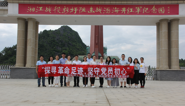 为加强对党员的教育与引导,提高党员的党性觉悟,激励党员牢记使命、勇于担当,增强基层党组织的凝聚力、战斗力。6月17日,学院组织全体研究生党员在湘江战役灌阳新圩阻击战酒海井红军纪念园开展了“探寻革命足迹,坚守党员初心”为主题的党日活动。
