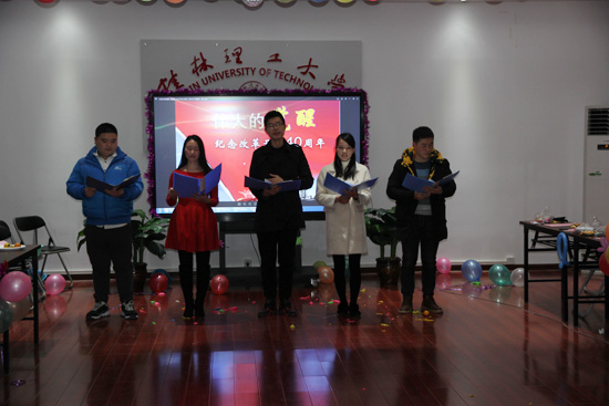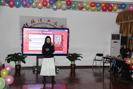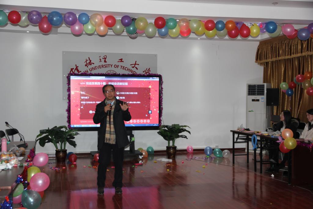 12月29日晚上19:00,学院在雁山07415举行了以“见证改革四十载,砥砺奋进新征程”为主题的2019年研究生元旦联欢晚会。学院部分硕士生导师出席晚会,师生齐聚一堂,会场张灯结彩,热闹非凡。