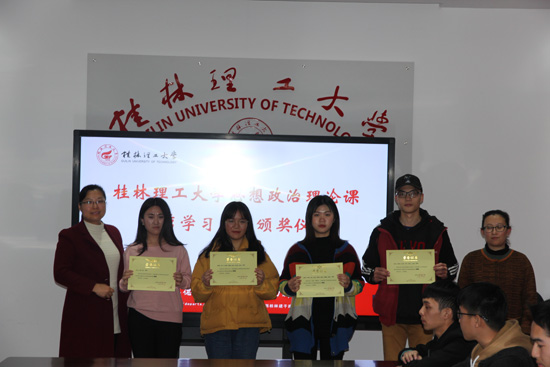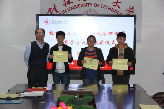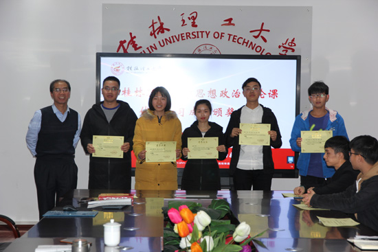 12月18日下午,学院在雁山校区举行十大买球官方网站思想政治理论课优秀学习成果表彰大会。学院党委书记王青山教授、学院副院长梁英教授、优秀指导老师邱娟和获奖学生代表出席了表彰大会。学院副院长梁英教授主持大会。