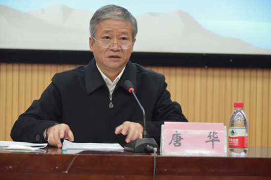唐华常务副部长围绕十九大报告“不忘初心,牢记使命,高举中国特色社会主义伟大旗帜,决胜全面建成小康社会,夺取新时代中国特色社会主义伟大胜利,为实现中华民族伟大复兴的中国梦不懈奋斗”的主题,深刻阐述了党的十九大的伟大意义,他强调,十九大报告是责任书、是公开课、是承诺书、是公开信、是倡议书,是中国方案、是中国道路、是中国智慧。