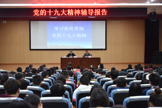 12月5日上午,自治区宣讲团成员、自治区党委宣传部常务副部长唐华在雁山校区图书馆报告厅为我校干部师生作学习贯彻党的十九大精神宣讲报告。学校副厅级调研员张劲松主持报告会,党委宣传部、党委学工部及十大买球官方网站全体师生聆听了报告。