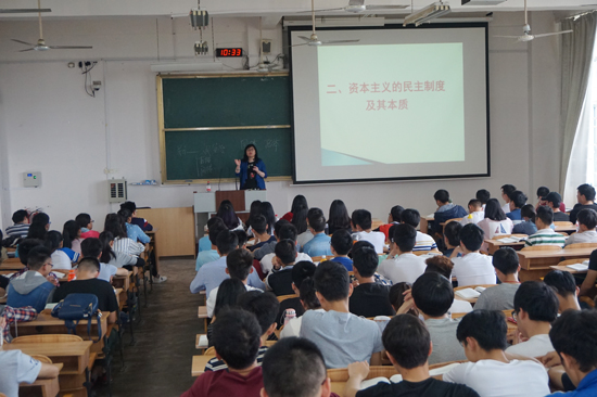 郭凤志教授讲授了《马克思主义基本原理概论》“资本主义的民主制度及其本质”部分。郭教授旁征博引,案例丰富,联系现实、生活,又结合了自己的见闻、经历,从资本主义民主制度的构建原则、美国民主制度存在的社会条件、如何认识和评价资本主义民主制度三个大方面深入讲解了资本主义民主制度。郭教授扎实的教学功底、丰富的教学经验、高超的教学艺术为师生们讲出了一堂高质量、高水平的示范公开课。