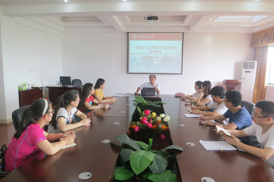 学院党委书记王青山为毕业生党员讲授了最后一次党课,与大家重温了党性修养,要求毕业生党员们以“两学一做”学习教育为契机,结合“学”与“做”,按照共产党员的标准严格要求自己,自我锻炼、自我培养、自我提高。并与毕业生党员开展了“坚定理想信念,做‘四讲四有’毕业生党员”的专题组织生活会,畅谈了在学校及走向社会后如何发挥党员先锋模范作用,王书记寄语毕业生党员,希望大家时刻铭记党员身份,在将来的工作岗位上要注重学习科学文化知识,实践锻炼,反躬自省,进一步加强理论学习,不断提升自我,做一名合格党员。