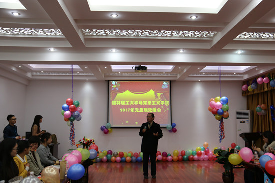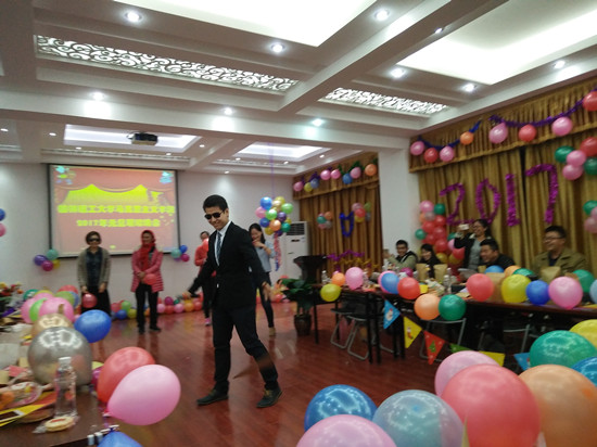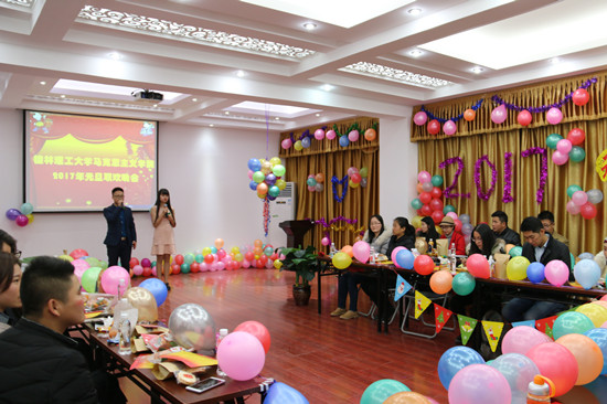 12月29日晚上19:00,学院研究生在雁山07415举行了学院2017年元旦联欢晚会。学院党委书记王青山、硕士生导师秦宏毅老师、辅导员焦艳老师出席晚会。当晚,学院师生齐聚一堂,会场张灯结彩,热闹非凡。