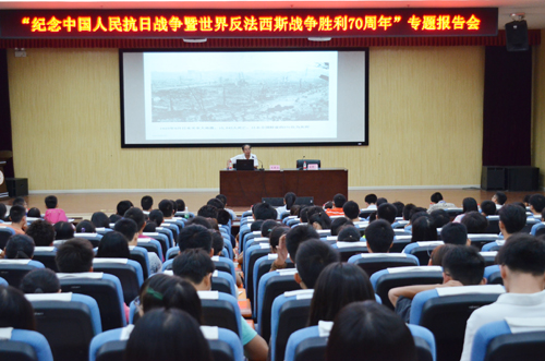 为纪念中国人民抗日战争暨世界反法西斯战争胜利70周年,进一步弘扬伟大的抗战精神和爱国主义精神,培育和践行社会主义核心价值观,由党委宣传部 、党委学工部和十大买球官方网站共同举办的抗战胜利专题讲座于8月31日晚在雁山校区图书馆报告厅举行。