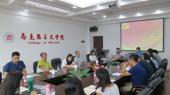 活动中,研究生们踊跃发言,紧密围绕抗战胜利70周年的意义、中国共产党在抗战中的中流砥柱作用等内容展开交流,发表自己的看法和见解。在艰难中奋起,在凌辱中抗争,同学们一致认为当今和平来之不易,气势恢宏的大阅兵让大家为之自豪,大学生一定要坚定马克思主义理想信念,发奋图强,争作优秀青年马克思主义者。与会老师结合“三严三实”专题教育对同学们的发言和讨论进行了总结和点评,对本专业研究生打好专业基础并逐步上升到学术专业高度寄予了深厚希望,