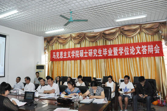 6月6日和6月7日,学院2014届硕士研究生学位论文答辩会顺利举行。思想政治教育和马克思主义基本原理两个专业共26位毕业生参加了答辩。答辩会邀请了自治区地质矿产勘查开发局党组书记唐善茂教授和广西师范大学博士生导师黄瑞雄教授分别担任答辩委员会主席,学院研究生导师、2014届硕士研究生参加了此次答辩会。