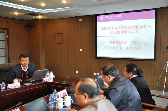 赵君副书记向与会专家学者介绍了我校马克思主义理论一级学科发展的基本情况,对自治区重点学科——思想政治教育二级学科的建设作了更为详细的介绍。在题为《民族地区高校思想政治教育学科建设的困境与思考》的主题发言中,他从民族地区高校思想政治教育学科的发展现状、民族地区思想政治教育学科建设的现实困境、推进民族地区思想政治教育学科快速发展的策略思考三个方面进行了深入阐述,得到了与会专家的一致好评。