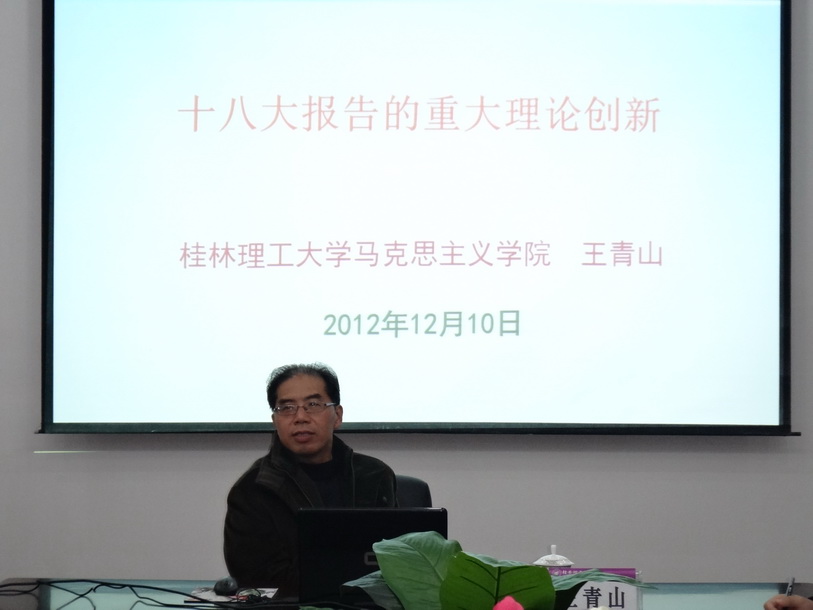 12月10日上午,为促进十大买球官网研究生深入学习贯彻党的十八大精神,学院党委书记、常务副院长王青山教授在雁山校区07415教室为十大买球官网全体研究生做了题为“十八大报告的重大理论创新”的报告。