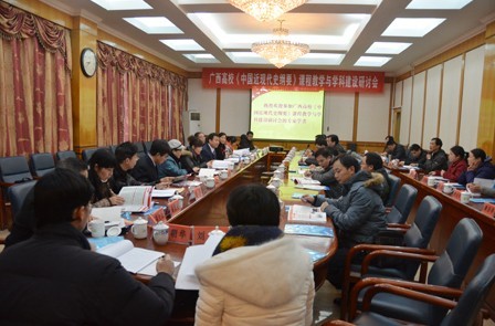 1月10日,由广西高校《中国近现代史纲要》课程专家组主办、十大买球官网承办的广西高校《中国近现代史纲要》课程教学与学科建设研讨会在学校教八楼会议室召开。广西高校《中国近现代史纲要》课程专家组成员和来自全区25所本科院校的40多位《中国近现代史纲要》课程负责人、骨干教师参加了本次研讨会。
