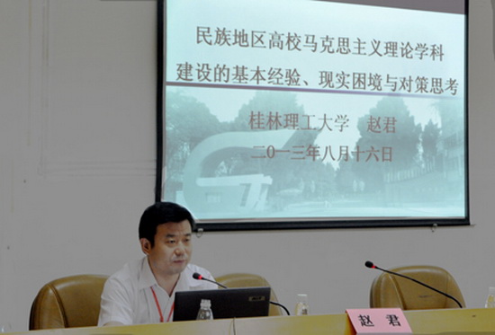 赵君副书记在题为《民族地区高校马克思主义理论学科建设的基本经验、现实困境与对策思考》的主题发言中,从民族地区高校马克思主义理论学科建设发展取得的突出成绩和基本经验,民族地区高校马克思主义理论学科建设的现实困境,提高民族地区高校马克思主义理论学科建设科学化水平的策略思考三个方面进行了深入阐述,得到了与会专家和代表的广泛好评。