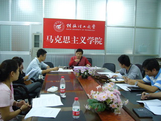 谷正杰同学负责的《基于自组织理论的广西大学生思想政治教育管理创新研究》和华向理同学负责的《广西高校“学习研究型”研究生党支部建设研究》分别介绍了课题的研究目的、研究内容、人员分工、计划进度、预计研究成果,并提出了课题目前存在的困难以及亟待解决的问题。
