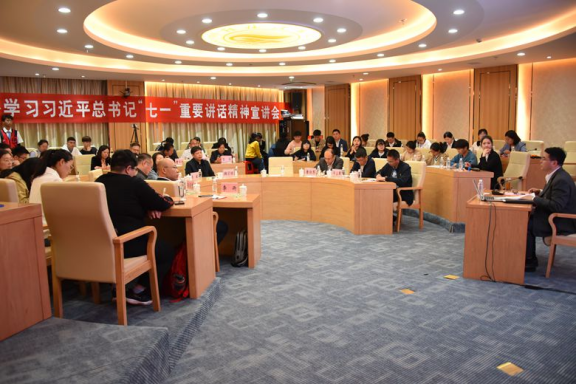 为深入贯彻习近平总书记“七一”重要讲话的精神实质和思想内涵,10月26日上午,我校在雁山校区大学生创新创业园案例研讨室举办“与信仰对话——学习习近平总书记’七一’重要讲话精神”宣讲会,学校党委书记李国忠作主题宣讲,马克思主义学院2020、2021级研究生以线上、线下同步进行的方式听取了本次宣讲。