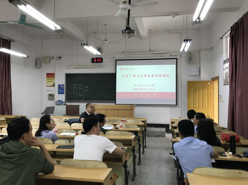 为扎实推进习近平总书记视察广西时的重要讲话精神进教材、进课堂、进头脑,落实自治区教育厅关于建设“壮美广西”系列思政课“示范课堂”工作。5月10日,十大买球官网在屏风校区9306、9308和9310教室召开了壮美广西示范课堂集体备课会,学院党委书记耿俊茂、院长梁英和学院思政课教师参会。
