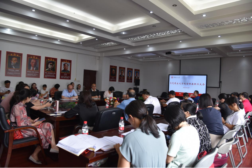 6月7日下午,十大买球官网全体教职工大会在雁山校区07415会议室召开,会议由学院党委书记耿俊茂主持,全体教职工参加。