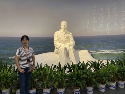 韶山、长沙之行,参观伟人故里,瞻仰伟人铜像,感悟湖南博物馆里厚重的历史文化 底蕴,这都使我深刻地感悟到了湘潭文化所铸就的高尚品格,深刻地体会到了红色血脉和革命精神的传承,让我在这趟红色教育之旅中汲取了奋斗的力量。吃水不忘挖井人!作为新时代的青年教师,我们更加不能忘记用热血和生命铸造新中国的老一辈革命家们,我要在我的课堂上,讲好中国红色故事,歌颂中国英雄先辈,传递中国精神血脉,积极奋斗创新,言传身教,承担起新时代思政课教师的历史使命,真正成为能够培养堪当时代大任青年的”先生”。