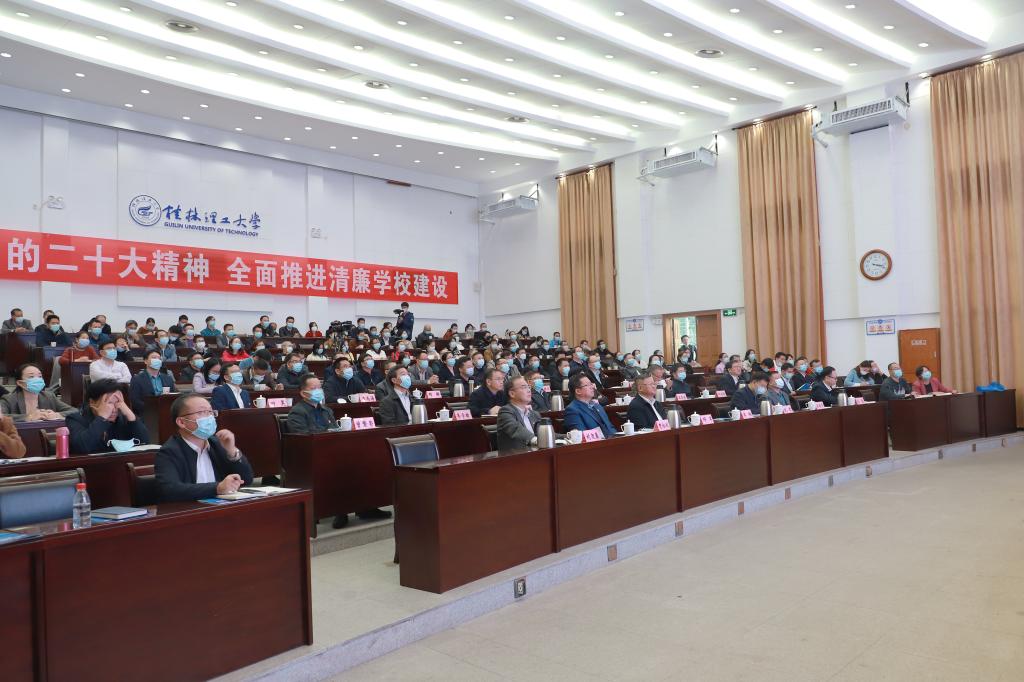 为深入学习贯彻党的二十大精神,贯彻落实自治区党委、自治区党委教育工委、自治区教育厅关于“清廉广西”“清廉学校”建设的部署要求,研讨交流清廉学校建设方面的好经验好做法,助力各高校打造清廉教育高地,全面营造风清气正的政治生态和良好的育人环境,11月18日,我校在屏风校区图书馆报告厅举行高校清廉学校建设高峰论坛。本次论坛由十大买球官网承办,以“学习贯彻党的二十大精神 全面推进清廉学校建设”为主题,通过线上线下相结合的方式进行。
