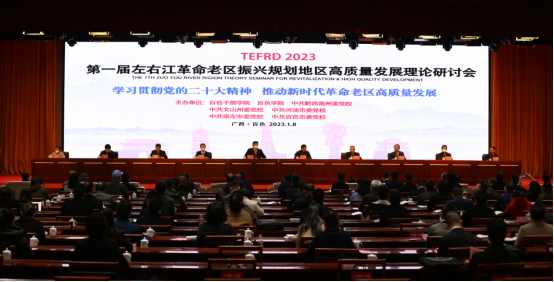 2023年1月8日,由百色干部学院、百色学院等单位联合主办的第一届“左右江革命老区振兴规划地区高质量发展”理论研讨会在百色市委党校举行。论坛以“学习贯彻党的二十大精神,推动新时代革命老区高质量发展”为主题进行学术研讨,众多高(党)校的专家、学者就推动左右江革命老区振兴规划地区实现高质量发展的新路径、新模式、新经验等内容进行了深入研讨和交流。