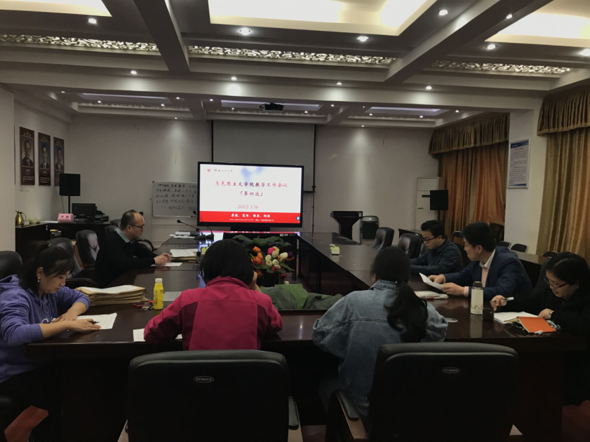 3月16日下午,十大买球官网在雁山校区07415会议室召开本科教育教学审核评估第四次工作推进会。学院教学副院长蒋晓俊主持会议,各教研室主任、教务信息员和教学秘书参加了会议。