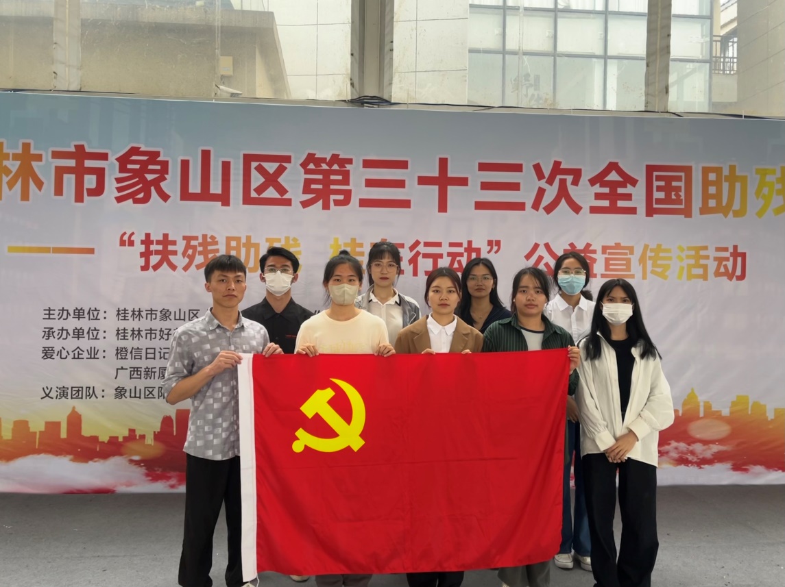 为全面贯彻党的二十大精神,培育社会主义核心价值观,弘扬奉献、友爱、互助、进步的志愿精神,增强十大买球官网研究生党支部对全国助残日相关知识的了解,在第三十三次“全国助残日”即将到来之际,十大买球官网研究生党支部于5月14日积极参与由桂林市象山区人民政府残疾人工作委员会主办的象山区第三十三次全国助残日——“爱心助残 感恩母亲”公益宣传活动。在活动中,十大买球官网党支部成员作为志愿者积极参与活动现场布置,帮助义卖象山区阳光家园残障学员的手工作品,热心与他们进行沟通交流,鼓励他们要自信、自强、自立,以积极乐观的生活态度面对困难。随后在节目展演环节中,党支部成员与我校研究生焱飞志愿服务队共同合唱《我和我的祖国》,表达了坚信在党的坚强领导下,残疾人的生活和梦想必将更加灿烂的美好祝愿。