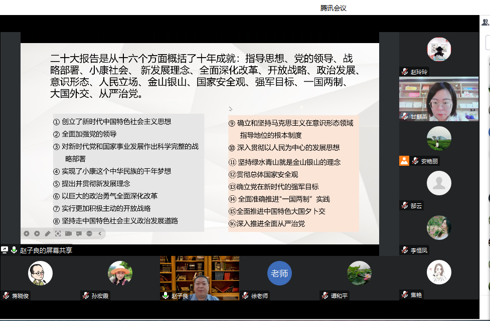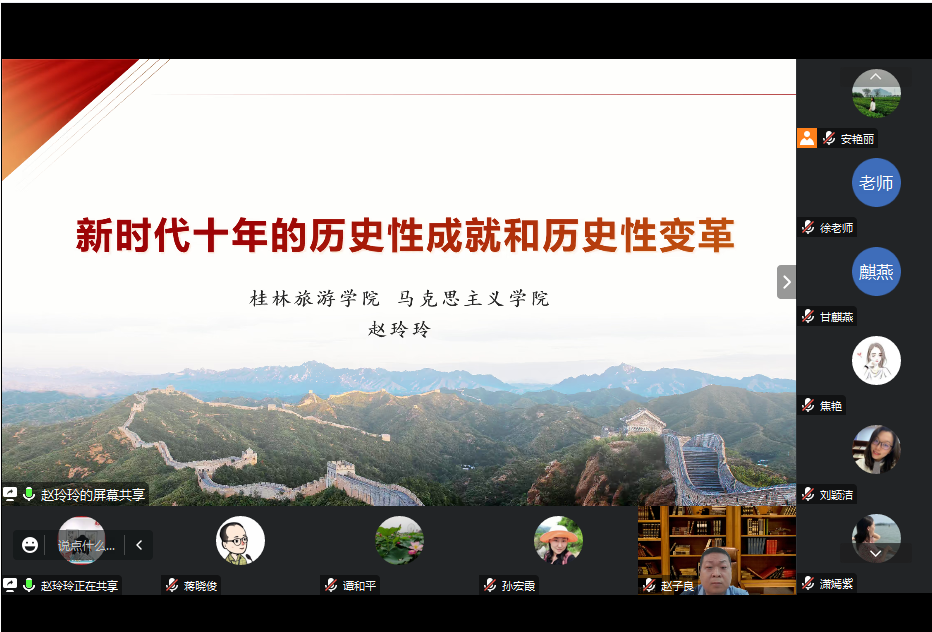 本次会议以虚拟教研室采取线上会议的形式,围绕“新时代十年来的历史性成就和历史性变革”这一主题,开展《习近平新时代中国特色社会主义思想概论》课程示范课交流活动。集体备课会上,分别由4所院校的中青年教师展示其授课的重难点、教学方法等,专家作精彩点评和指导,参与结对共建高校的十大买球官方网站习近平新时代中国特色社会主义思想概论教研室的教师们做了经验交流和分享。