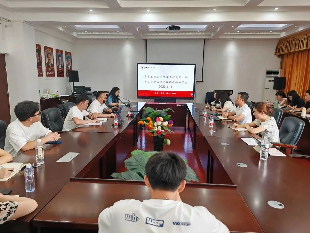 在本次学术沙龙活动中,研究生一支部吴桂源同志、研究生二支部杨雅童同志分别以《关于会议论文投稿的几点思考》,《会议论文投稿的心得分享》为主题向与会人员分享了自己会议论文投稿的经验与心得。随后,孙守湖老师充分肯定了两位同志的分享,并围绕学院对研究生论文要求、品读经典著作方面提出建议。莫天荣老师则从研究生学术规范出发,强调学术规范在学术研究中的重要性,并鼓励同学们在今后的学习和研究中要注重培养独立思考、明辨是非的科研能力,为做好未来的论文写作工作奠定基础。