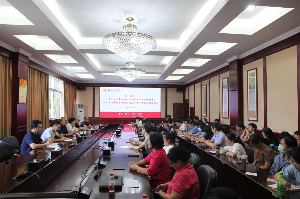 会上, 学院党委书记耿俊茂带领全体教师深入学习了习近平总书记到黑龙江考察讲话精神、习近平总书记给东北大学全体师生的回信精神。与会人员围绕学习内容并结合实际工作依次发言交流学习体会,表示要牢记嘱托,不负韶华,不负时代,做好新时代的“大先生”,引导广大青年在实现中华民族伟大复兴的时代洪流中踔厉奋发、勇毅前进。