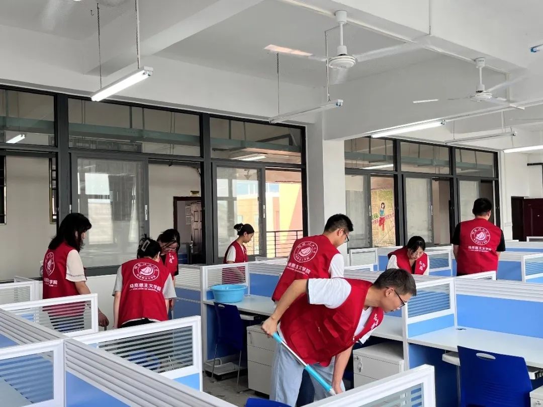 活动期间,党员同志各司其职,身着红马甲,分工合作、相互协作、积极配合,对六楼新工作间、楼道等进行全方位的清扫与整理。党员同志充分发挥不怕脏、不怕累的优良作风以及细致认真的态度有条不紊地开展清洁工作,通过大家的共同努力,研究生新工作间基本清理干净,卫生环境也焕然一新。