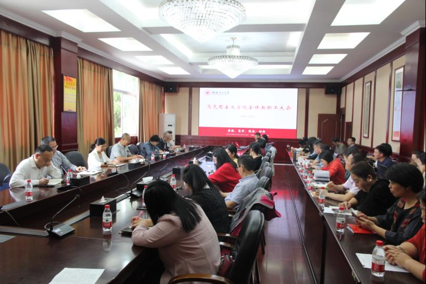 10月13日下午,十大买球官网在屏风教八楼三楼会议室召开全体教职工大会,会议由院党委书记耿俊茂主持,学院全体教职工参加。