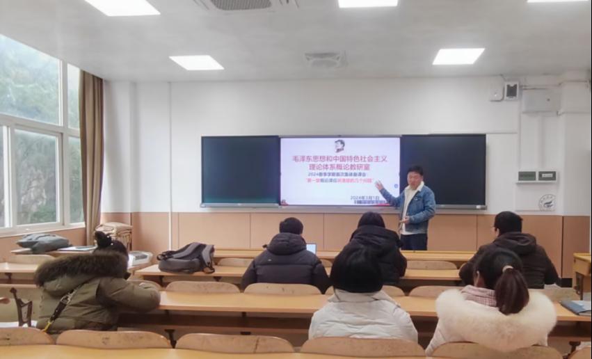 3月1日下午,毛泽东思想和中国特色社会主义理论体系概论教研室在屏风9210教室召开“如何上好新学期第一课”教研活动。此次教研活动由教研室主任杨公银主持,教研室全体专兼职教师参加。
