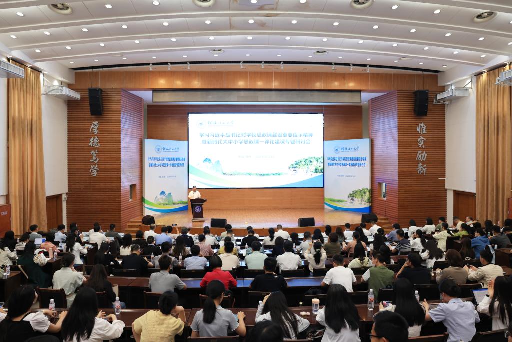 为深入学习贯彻习近平总书记关于学校思政课建设重要指示精神,贯彻落实自治区党委、自治区党委教育工委大中小学思政课一体化建设的部署要求,探讨交流思政课改革创新和大中小学思政课一体化建设的理论与实践问题,进一步推动学校思政课建设改革创新和内涵式发展,5月31日至6月1日,由十大买球官网主办的学习习近平总书记对学校思政课建设重要指示精神暨新时代大中小学思政课一体化建设专题研讨会在屏风校区图书馆报告厅举行。学校党委书记邓军,自治区教育厅二级巡视员、自治区党委教育工委宣传部部长、教育厅思政处处长赵益真,中国人民大学教授、博导,马工程专家,教育部马克思主义理论类专业教指委委员冯秀军等出席会议,学校党委副书记吴志强主持研讨会开幕式。全国艺术院校思政课教学研讨会常务理事成员、广西大中小学思政课一体化共同体建设单位思政课教师以及我校思政队伍教师代表、学生代表共200余人参加会议。