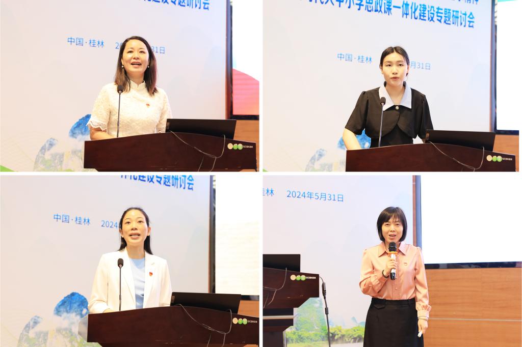 四位来自广西大中小学思政课一体化共同体建设单位的一线思政课教师进行示范教学
