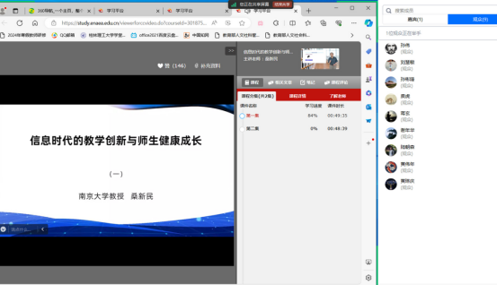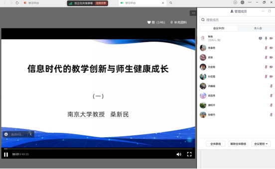 近日,十大买球官网以教研室、办公室为单位组织开展了“师德大讲堂”2024年 (第1期)活动,通过中国教育干部网络学院网络学习平台观看聆听了南京大学教育研究院教育科学与管理系网络化学习与管理研究所所长桑新民的“信息时代的教学创新与师生健康成长”主题报告,全体教职工参加。