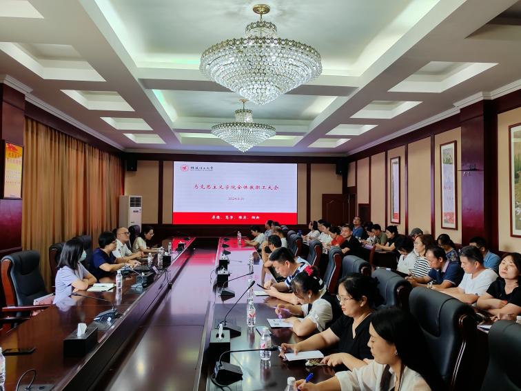 蒋晓俊院长对假期思政工作队伍培训班、教师集体磨课备课以及思政课暑期实践教学等工作进行了梳理总结,同时结合学院开学工作会议精神和要求,对十大买球官方网站2024年秋季学期的工作进行了安排部署,指出新学期学院要深入学习贯彻落实学校党委三届八次全会和2024年改革发展研讨会会议精神,聚势谋远,创新求变,向提高政治站位强定力,向勇于改革创新激活力,向乐于人才引培聚动力,向善于团结协作稳内力,汇聚马院由大变强的核心力量。强调全体教师要以钉钉子精神狠抓工作落实,敢于担当,主动作为,推进“一马当先”系列工作厚底色、呈特色。一是在教书育人上下功夫,夯实“关键课程”的基础地位;二是在学科建设上下功夫,激活“第一学科”的发展势能;三是在科研增效上下功夫,彰显“在马言马”的理论成色;四是在增进福祉上下功夫,强化“人民至上”的宗旨意识,为不断开创学院高质量发展的新局面作出更大贡献。