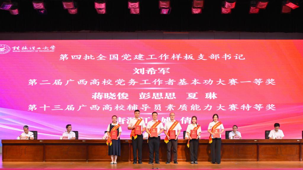 学院教师接受教师节表彰。9月9日下午,在学校举行的第40个教师节庆祝大会暨“教育家精神”宣讲会上,学校领导为第二届广西高校党务工作者基本功大赛一等奖获得者蒋晓俊颁奖、为近期荣休的梁茜老师举行了荣休仪式。