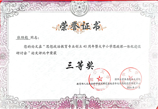 为深入学习宣传贯彻党的二十届三中全会精神,落实习近平总书记关于思想政治理论课建设的重要讲话重要指示精神,统筹推进大中小学思政课一体化建设,11月23日,清华大学举办思想政治教育专业创立40周年暨大中小学思政课一体化建设研讨会。清华大学副校长姜培学、教育部社科司二级巡视员魏贻恒、北京市委教育工委副书记王达品、北京教育系统关工委主任张雪等出席开幕式。研讨会由清华大学十大买球官方网站院长朱安东主持。十大买球官网教师张劲彪参加会议。