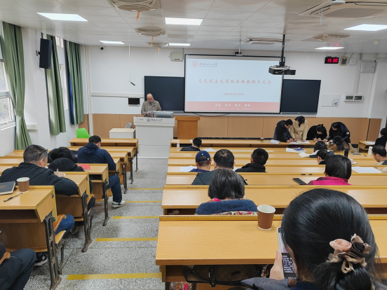 会议投票选举出了26名第一届教代会代表,听取并审议了院长蒋晓俊同志所作的学院工作报告,充分肯定和高度评价了过去一年学院的工作和所取得的成绩,并对今后的工作进行了布置。最后,梁英同志讲话,她号召全院教职员工要紧密地团结在以习近平同志为核心的党中央周围,高举中国特色社会主义伟大旗帜,坚持以习近平新时代中国特色社会主义思想为指导,全面贯彻落实党的二十届三中全会精神,深入学习习近平总书记对学校思政课建设作出的重要指示,全面贯彻党的教育方针,全面落实立德树人根本任务,以思政课内涵式建设为中心,不断提高思政课的教学质量和育人效果。在今后的学院的工作中,以党建工作为引领,学科建设为龙头,以人才队伍建设为保障,加强顶层谋划、团结协作、精耕细作,奋力推进学院各项事业的高质量发展。
