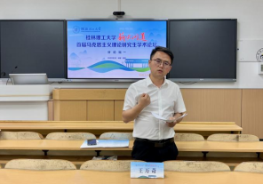 分论坛一由广西师范大学博士后王万奇副教授点评。王万奇副教授在点评发言者的论文基础上,聚焦“如何在实践调研中扎实开展科研工作”,从“研究选题”“实践调研”“理论建构”等方面进行经验分享,并针对与会发言者提出的科研困惑进行亲切幽默且有深度的回应。与会的青年学生纷纷表示,在未来的学术研究中将高度重视实践调研,从现实发展中挖掘理论的生长点,用理论创新来阐释中国特色社会主义的伟大实践。