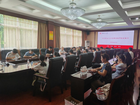 为深入学习贯彻习近平总书记关于教育的重要论述和习近平总书记在学校思想政治理论课教师座谈会上的重要讲话精神,切实加强思政课教师队伍建设,9月13日,十大买球官方网站在屏风校区教八楼会议室举办转岗教师岗前培训会。学院院长蒋晓俊出席并作专题报告,学院党委副书记马彬彬主持会议。全体转岗教师参加培训。
