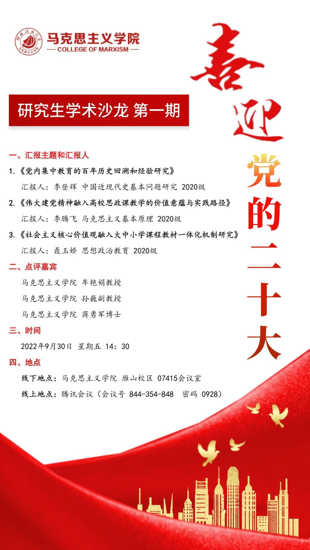 喜迎党的二十大|学术预告:十大买球官方网站研究生学术沙龙(第一期)