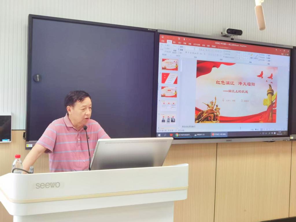 钟毅以《红色漓江 烽火临阳——漓江上的抗战》为题,结合自身多年来的深入采访实践,围绕临阳联队的诞生、战火燃至桂林、临阳联队抗日功绩及意义等内容,进行了深入讲解。钟毅还向教师们展示了自己编导的纪录片《红色漓江》,让他们更加直观深入地了解到在中华民族生死存亡的紧要关头、在中国共产党的领导下、在青翠的漓江两岸,临阳联队谱写的一曲抗击日寇侵略的壮丽战歌。